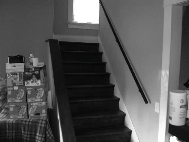 Around maybe 1:30pm I was upstairs cleaning up after cutting the lawn when I heard a huge thump and Lizze screaming for me. Emmett John had fallen down the entire flight of steps. He fell forward and then end over end. He was hysterical. He had smashed his face and nose into the un-carpeted stairs over and over again on his way down. His face is pretty banged up.