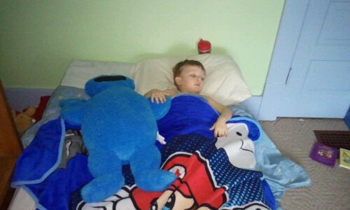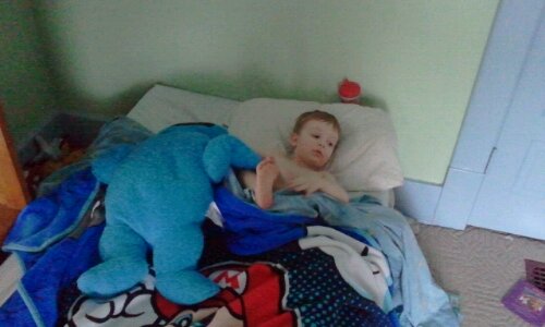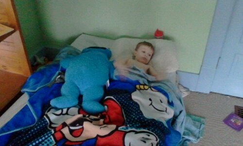 Do you come home and say to yourself, "damn, I'd swear someone has been here". You may brush it off, but in Elliott's case he's not crazy and here is the proof. Emmett put himself down for a nap in Elliott's bed. He made him self comfortable and is watching kung fu panda. He got his sippy, his grover, pick his nose, ears and toes (sorry Elliott) and settled in.