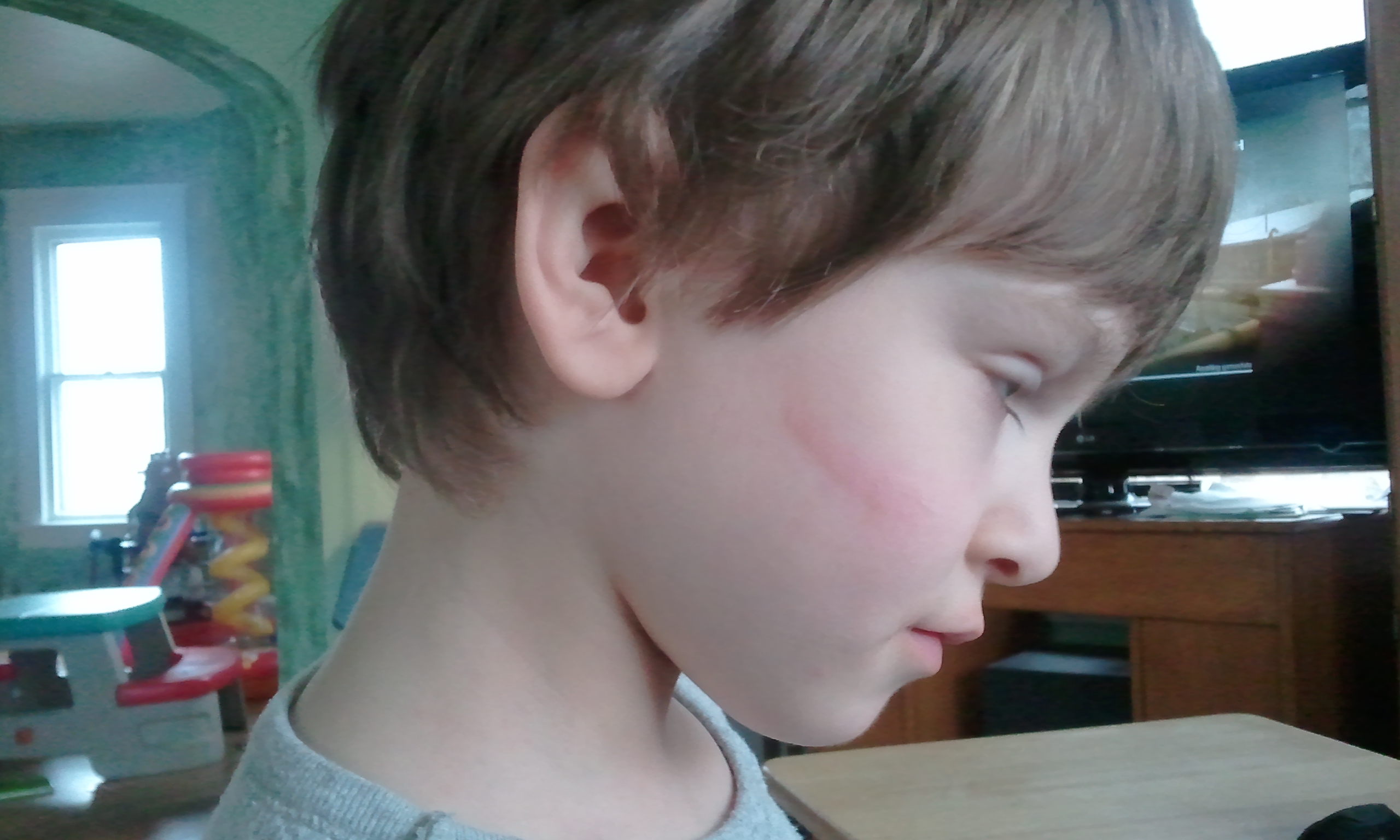 Emmett got a hold of Elliott's face this afternoon. As usual it was unprovoked. I used to think that Emmett did this out of frustration but that's clearly not the case. Sometimes I wonder if there is any rhyme or reason to this behavior. I know that we have tried everything short of corporal punishment (and that is a line we will NOT cross) and nothing seems to help. Please don't leave comments advocating corporal punishment either. You can't teach a child to stop hitting someone else by hitting them.