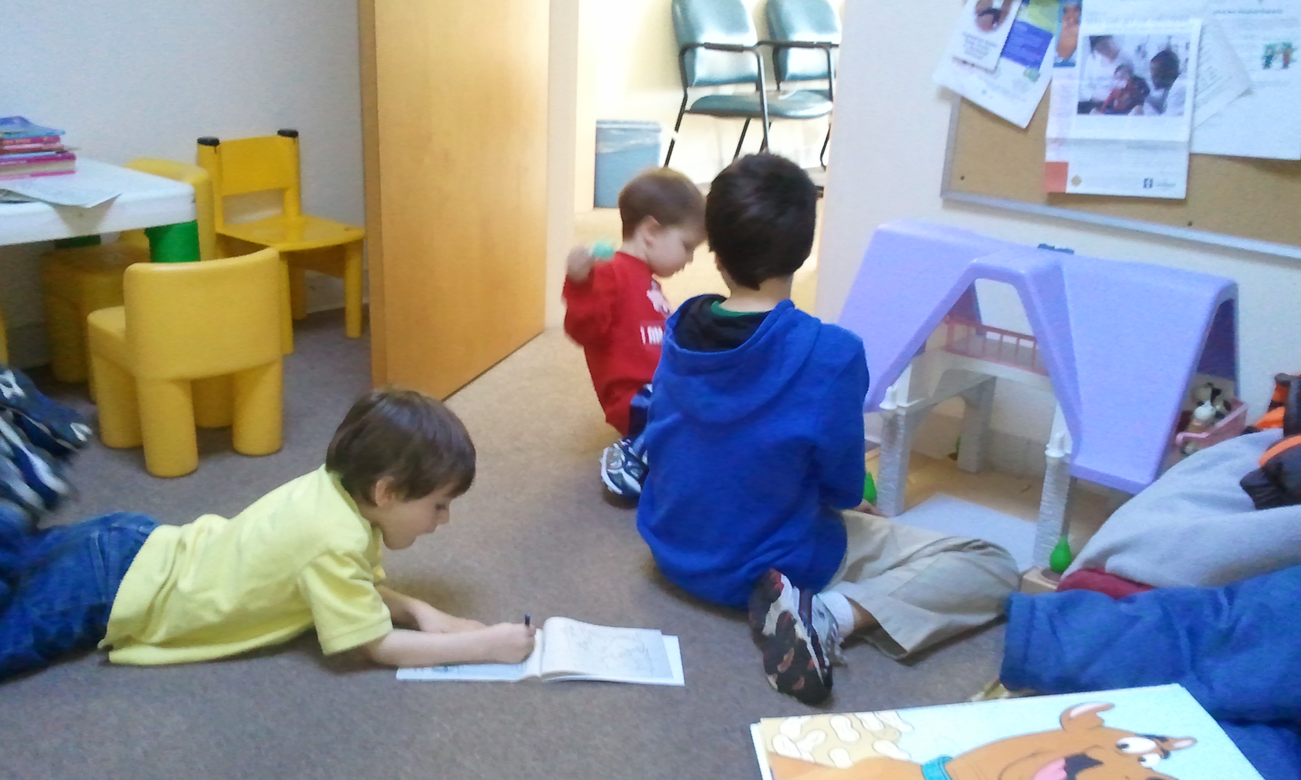 Yesterday was one of the toughest days in recent history for me. I took Elliott and Emmett in and/or out of their carsets 28 times yesterday. I actually sat down and figured that out. Anyway, I do enjoy meeting with Dr. Pattie for the boys therapy. The boys get out and get to play in the big play room and daddy gets another "adult" to talk to.