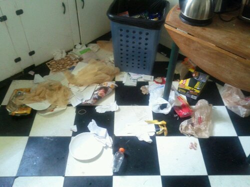I ran upstairs for a minute to get something and this is what I came back to. Bad dog..very bad dog. I mean what is this all about. Sigh....very out of character for Maggie. Not sure what is with her lately.