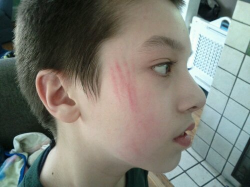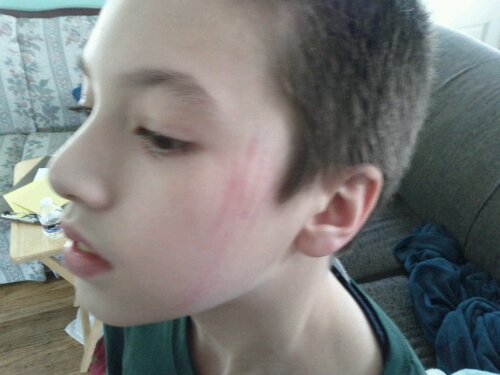 Gavin had a meltdown this morning resulting in self-injury. This was severe enough that we are taking him to Akron Children's Hospital for possible addmission as he has become a threat to himself. Please say a prayer for Gavin that he finds the help he needs to stop hurting himself. I wanted to give those without any experience an idea of what I mean by self-injury. I fully realize that many of you deal with much worse behavior in your life. However, as I always say, everyone's experience is relative and for us this is getting much worse. Plus we have the added concern of the younger two continuing to pick up on this behavior.