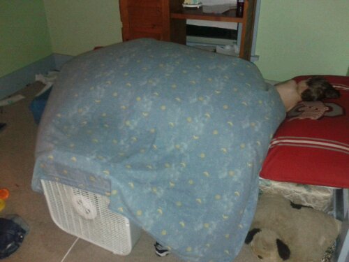 It's almost 90f here and the humidity is through the roof. Trying to keeps these guys as cool as possible. So last night we tried this.Elliott really likes his "balloon bed", as he calls it. Whatever works I guess. The heat doesn't mix well with sensory issues so we have to sometimes be creative.