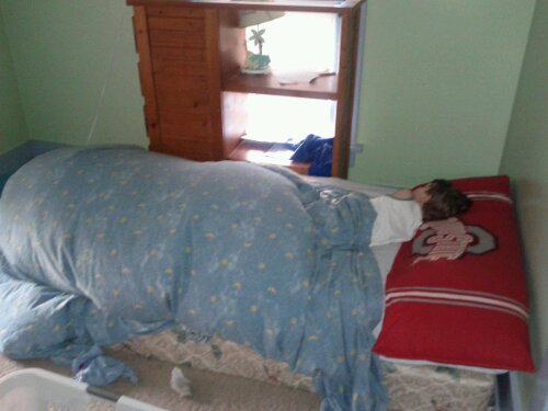 Elliott wanted me to show everyone his "balloon bed". I promised him I would so here ya go. It actually looks kinda fun....or maybe I'm just a dork.