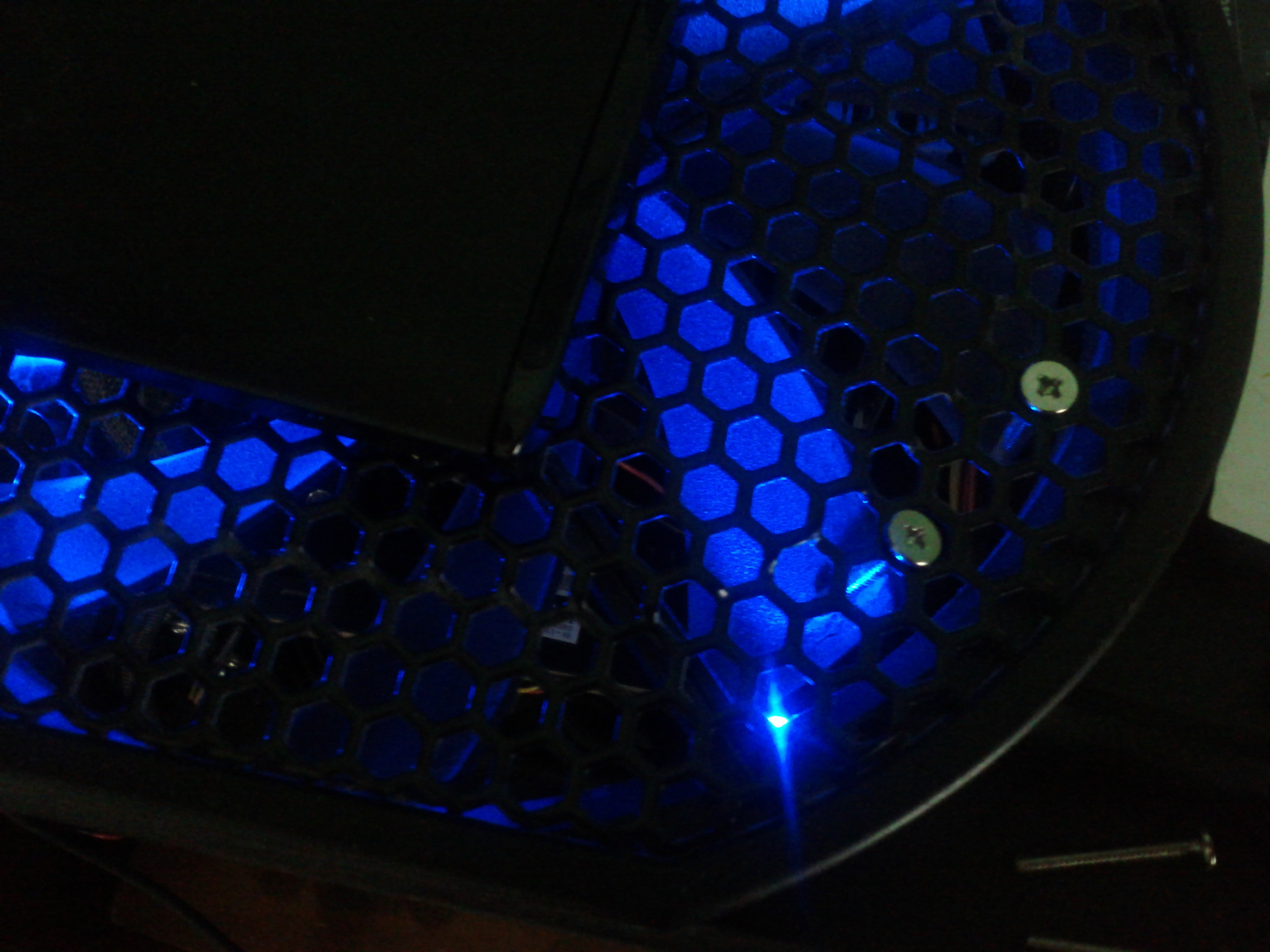 Can you spot how Emmett "helped" me in this picture. I try to involve the boys in much of what I do. Emmett likes to be Daddy's little helper. This is a result of Emmett "helping" when Daddy isn't looking. No harm done. Plus he was really proud of himself. Oh...and if you can't figure out what's wrong with this picture, Emmett jammed 2 hard drive mounting screws into the top of the tower binding the fan and forcing it to stop. I caught it pretty quick so everything is ok.