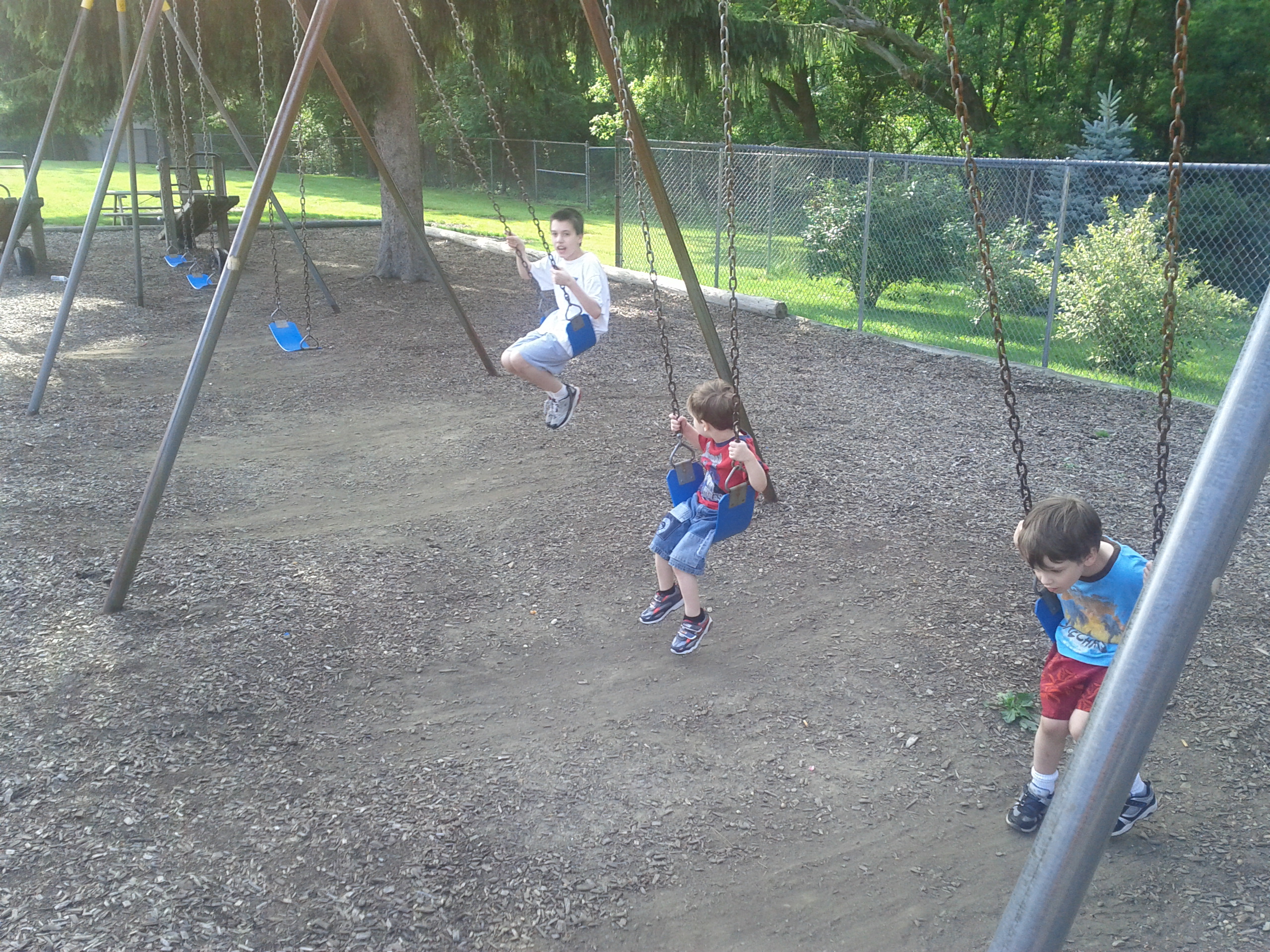 Today has been am exceptionally trying day. Things we getting pretty ugly so I decided intervene before things got any worse. I packed everyone up and we headed off to Elliot's school or what used to be his school and we all played on the play ground. The kids had a lot of fun. Even Gavin did pretty well. When we got home we had a little cook out and ate in front of the TV on a little picnic table. We put on some Netflix and relaxed until bedtime. Just a shot of normalcy. It doesn't last long but it's nice while it does.
