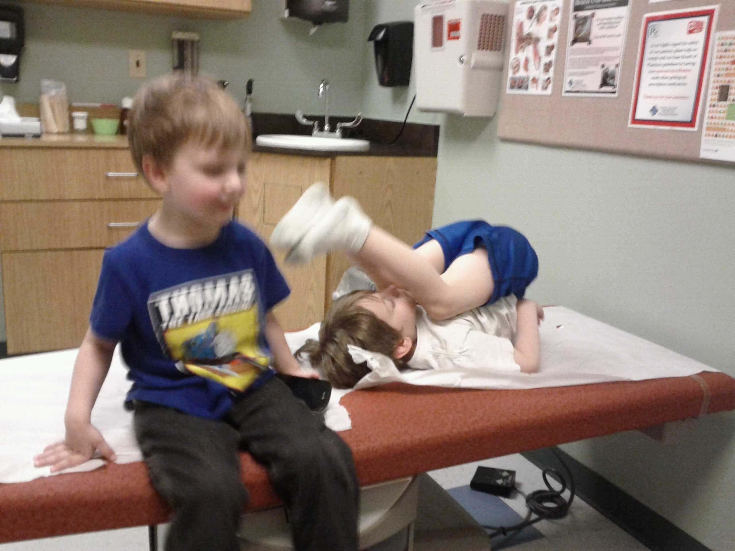 The boys have both had their vitals taken and in a surprising turn of events, Emmett would not tolerate the BP cuff. ;-)