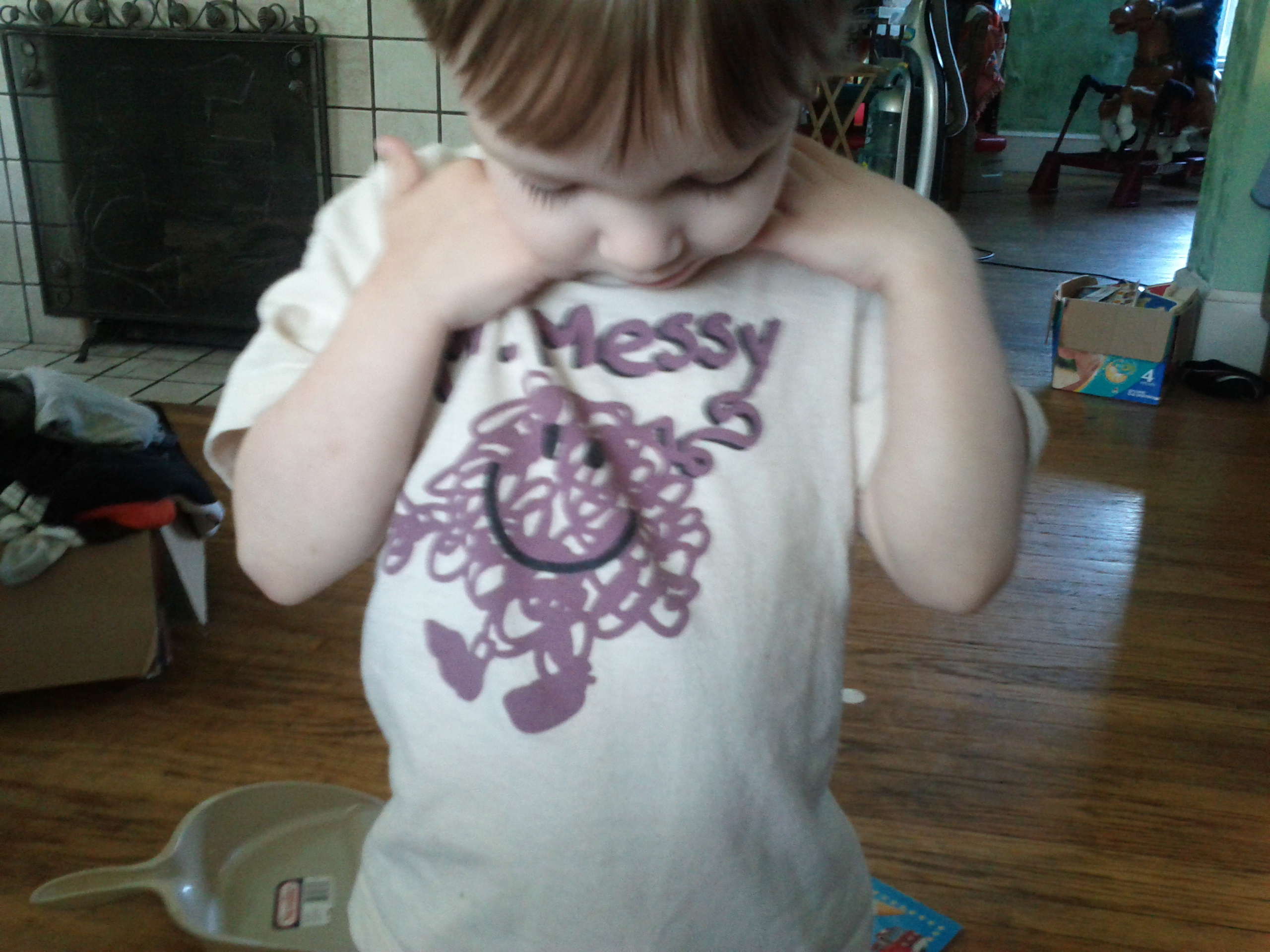 Emmett brings you his "Mr. Messy" T-shirt today. This is one of his most favorite shirts in the whole wide world.
