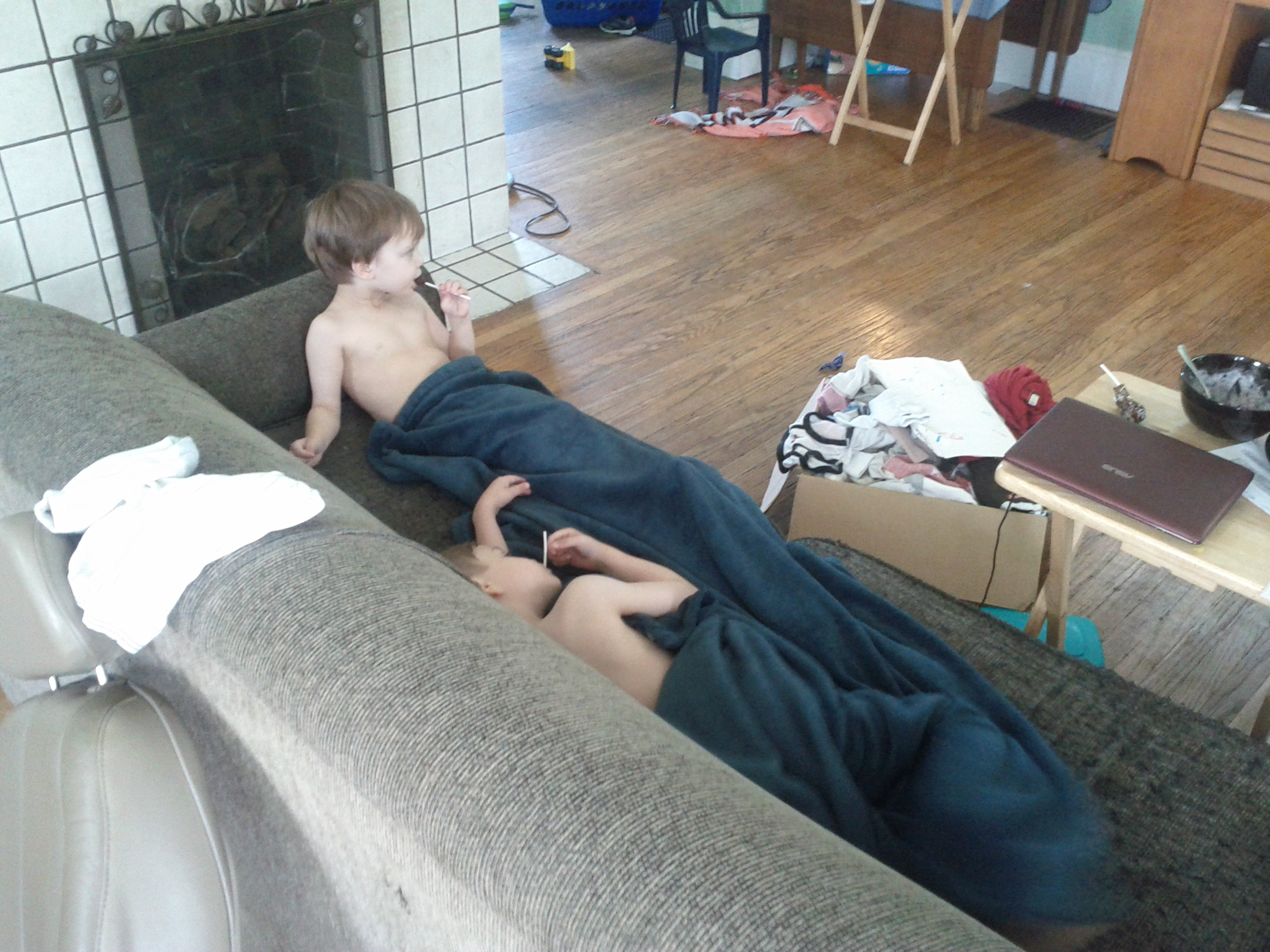 On occasion, the Lost and Tired family has a few of those quiet moments many others likely take for granted. This was one such moment this afternoon. Elliott and Emmett were sharing a blanket and couch while watching The Care Bears on Netflix.
