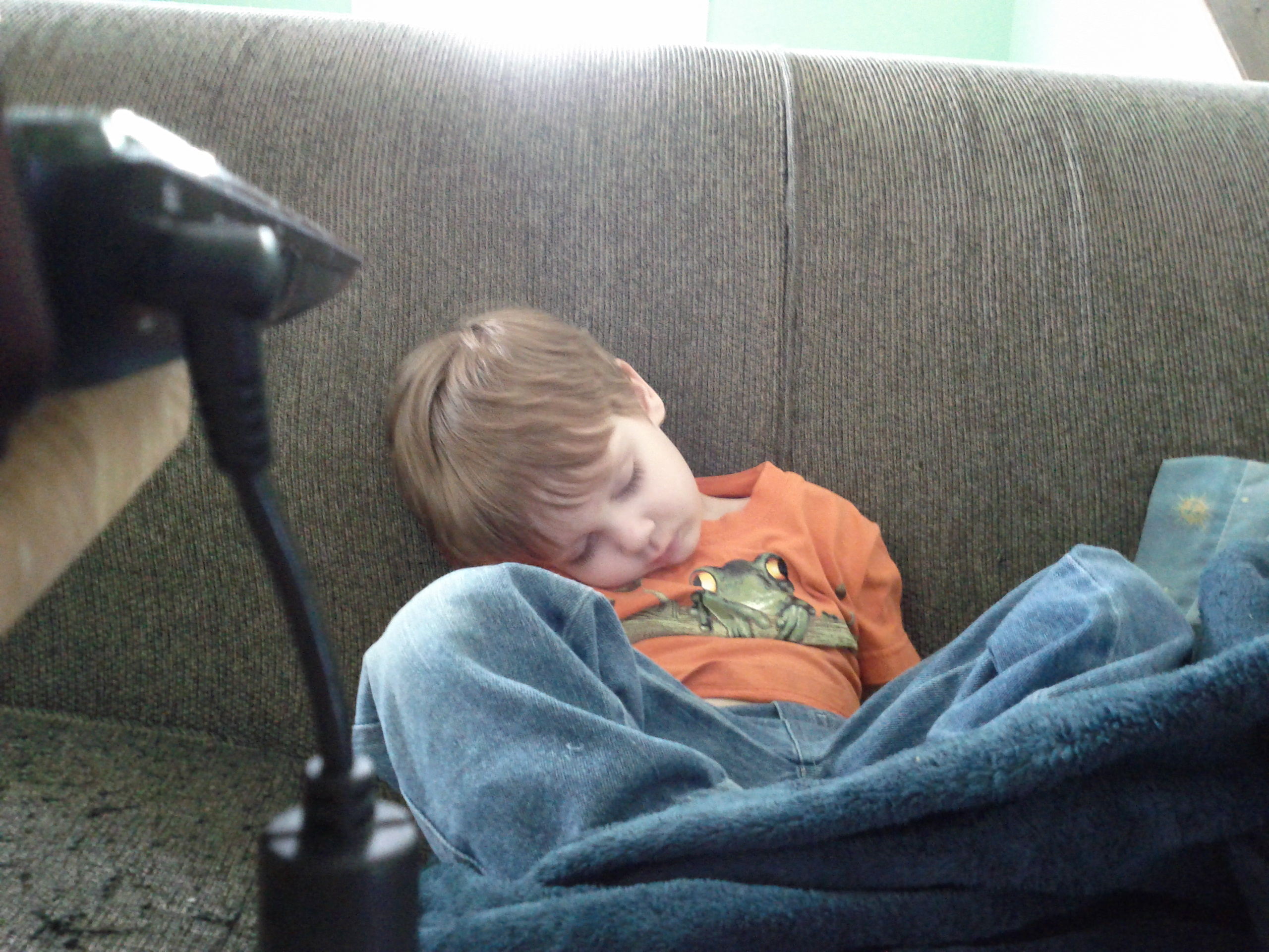 After a long tiring day of playing, screaming and yelling Emmett finally crashes. While sitting up on the couch AND fully clothed. :-) Isn't he precious...