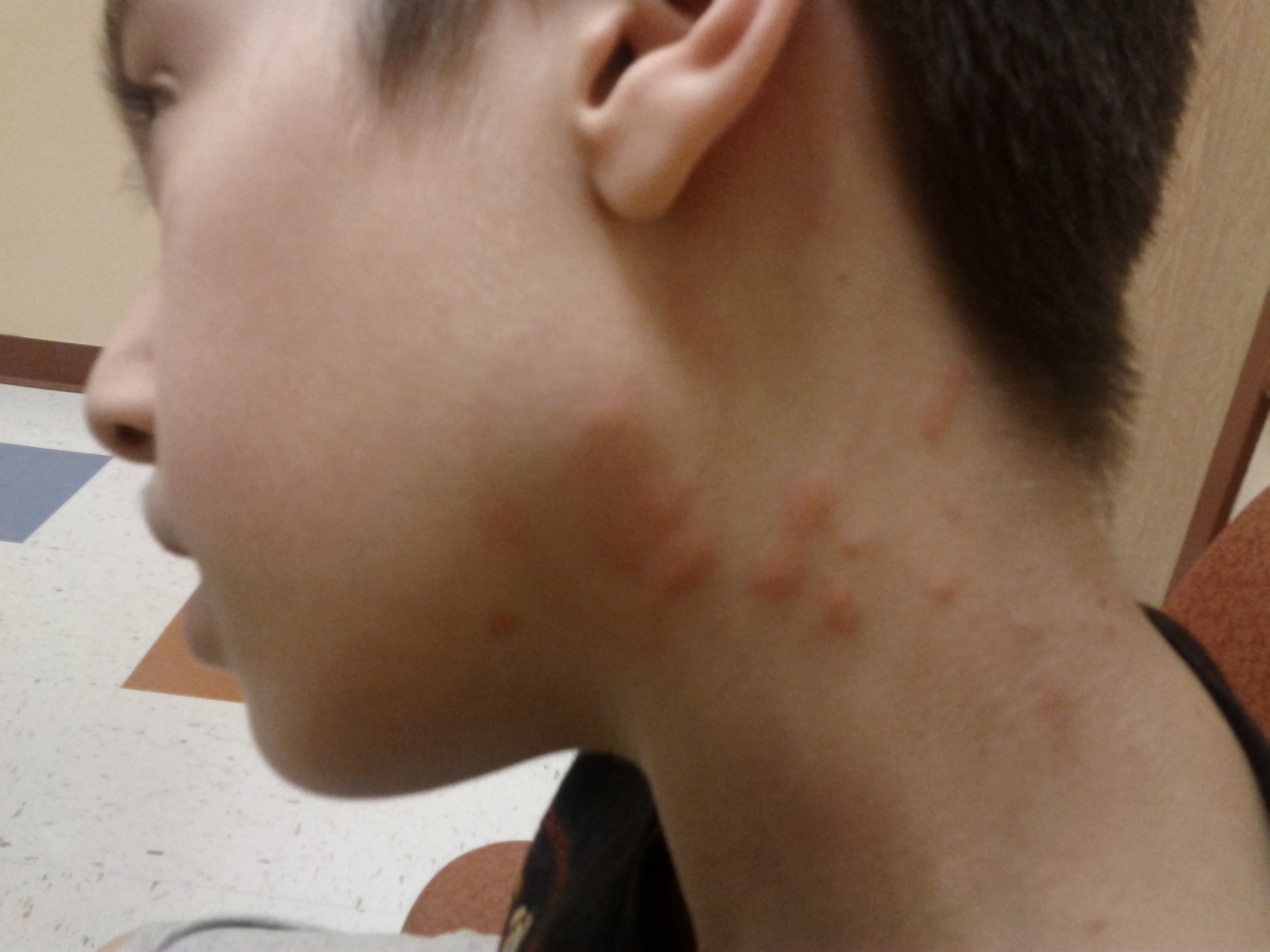 Gavin is getting a bit anxious and is very uncomfortable. They put us in an isolation room because we don't know for sure what it is.