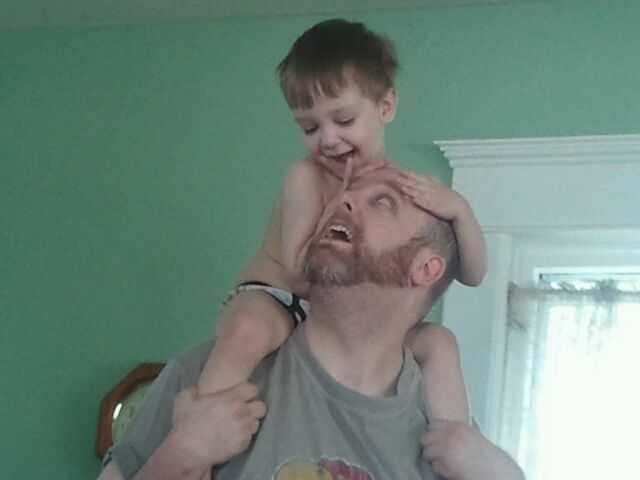 Emmett decided to climb onto my shoulders for the very first time. In the past he was always uninterested or afraid. Then the other day I was sitting on the couch and he came up behind me and jumped up on my shoulders.