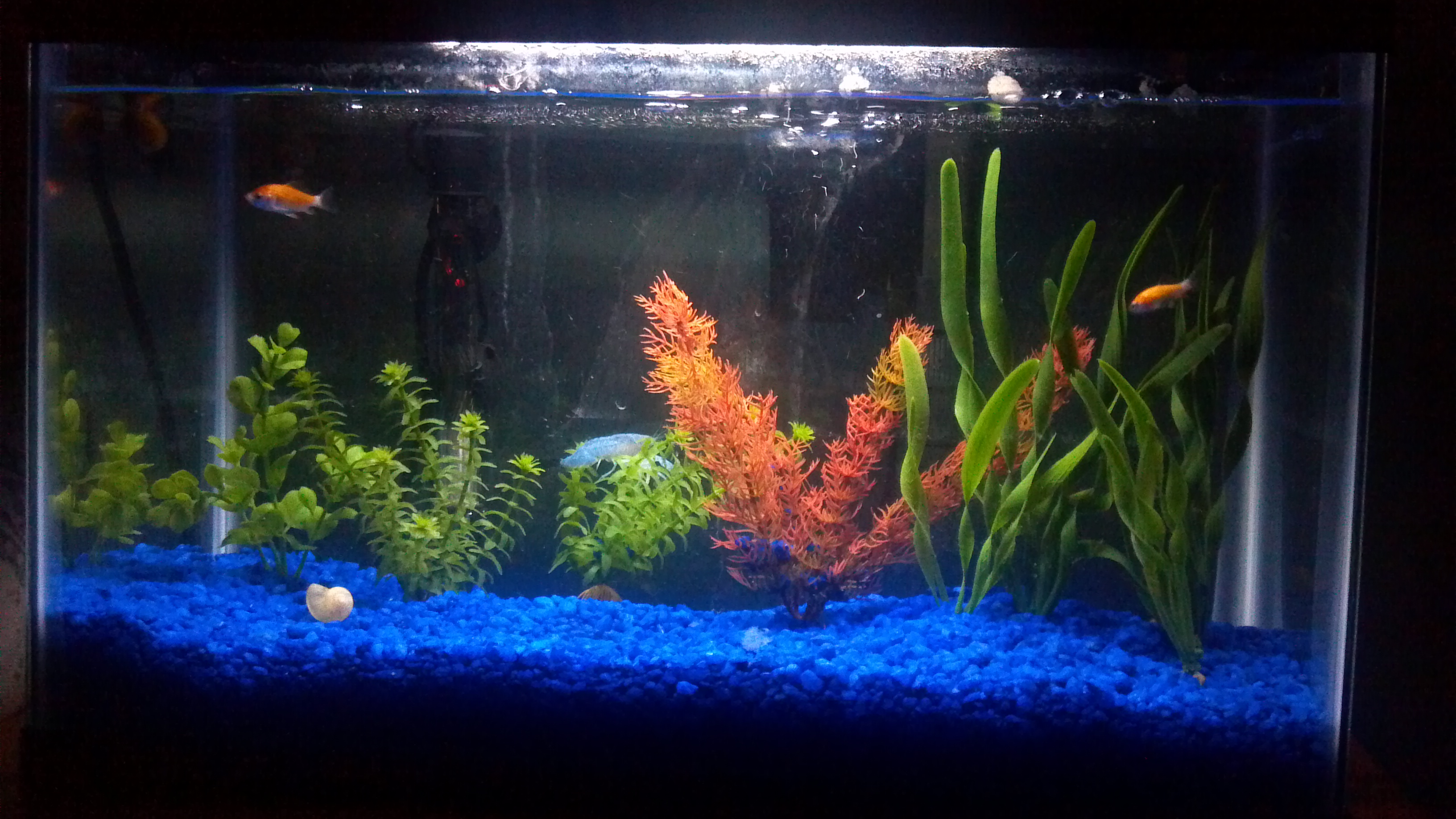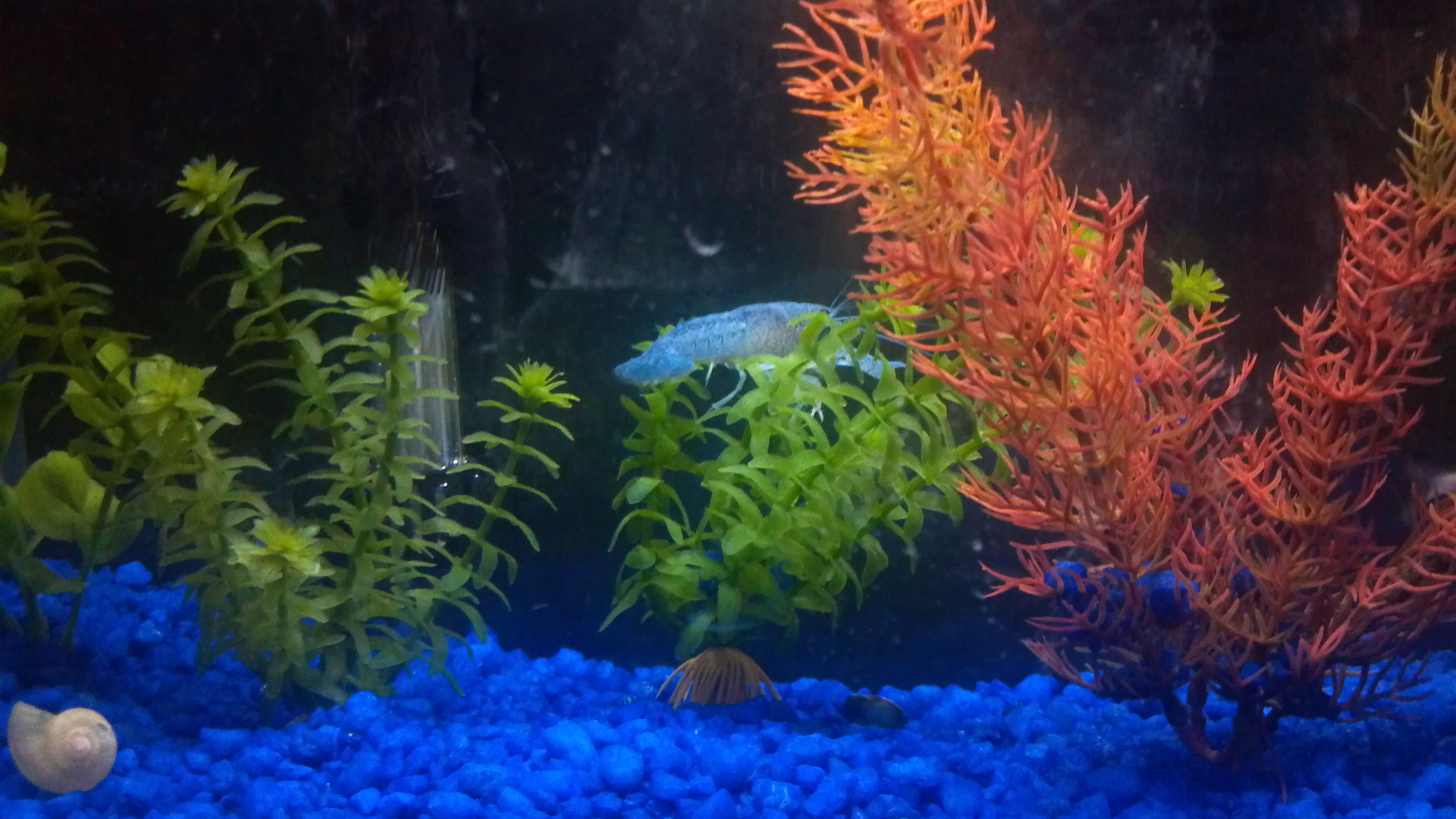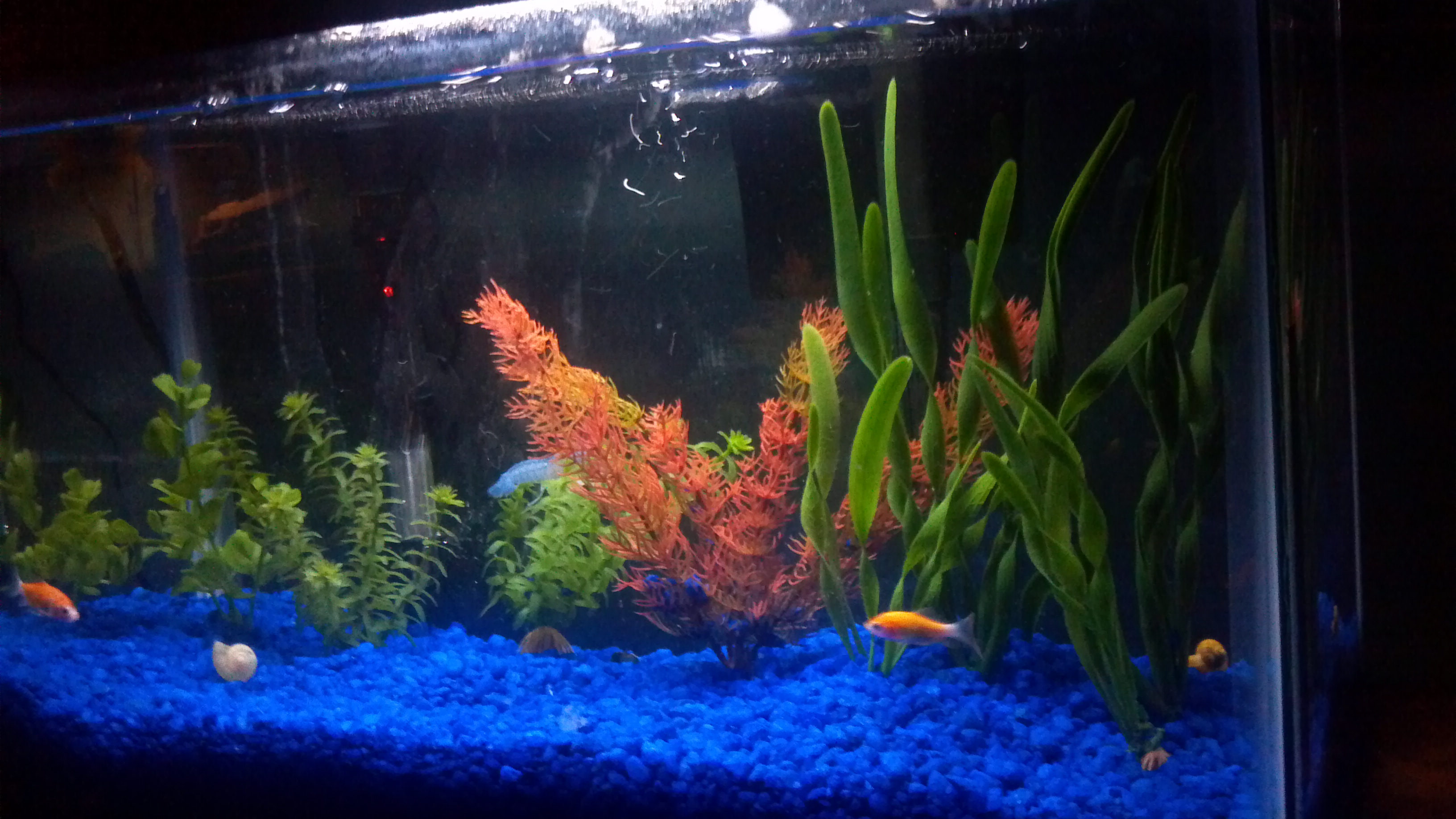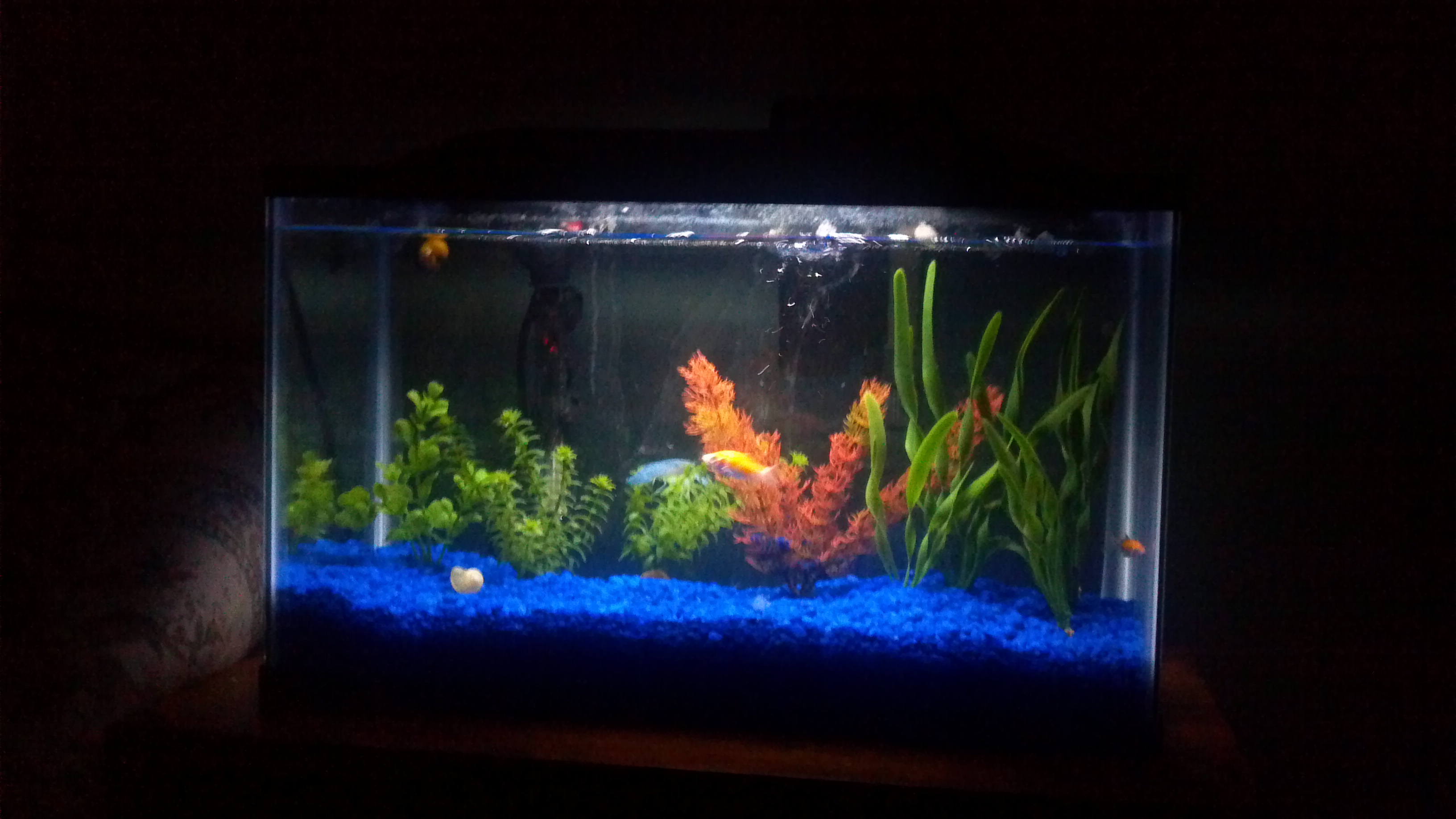 Right now he has 2 goldfish, 3 snails and 1 blue crayfish named *cranky crab*. He's beyond proud of his aquarium.