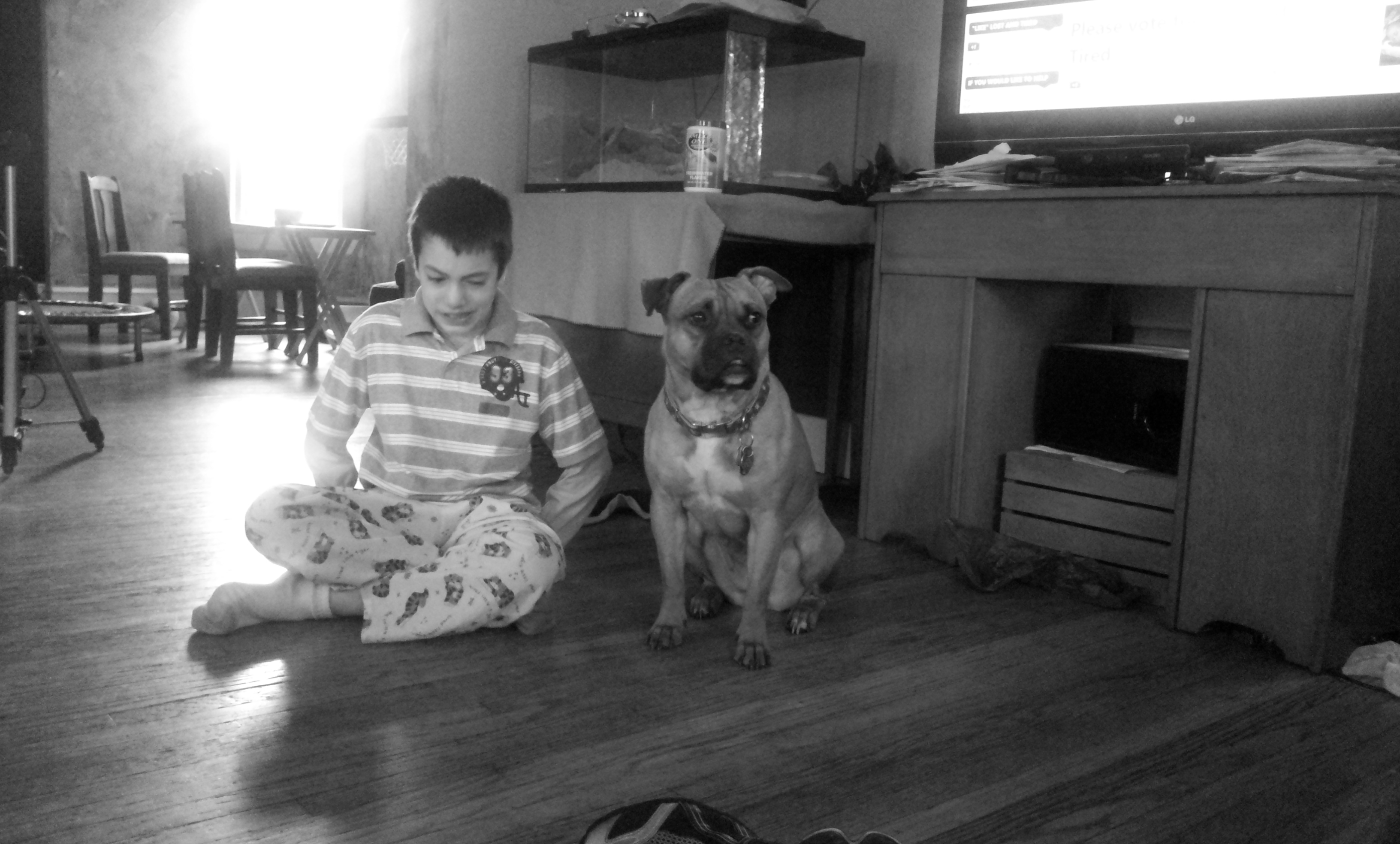 So Gavin is having this meltdown and the entire time Maggie is sitting there with him. It's like she is his little guardian angel. She just sits there patiently waiting for him to regain his composure. If he begins to get to aggressive, she will nudge him and he will respond positively.
