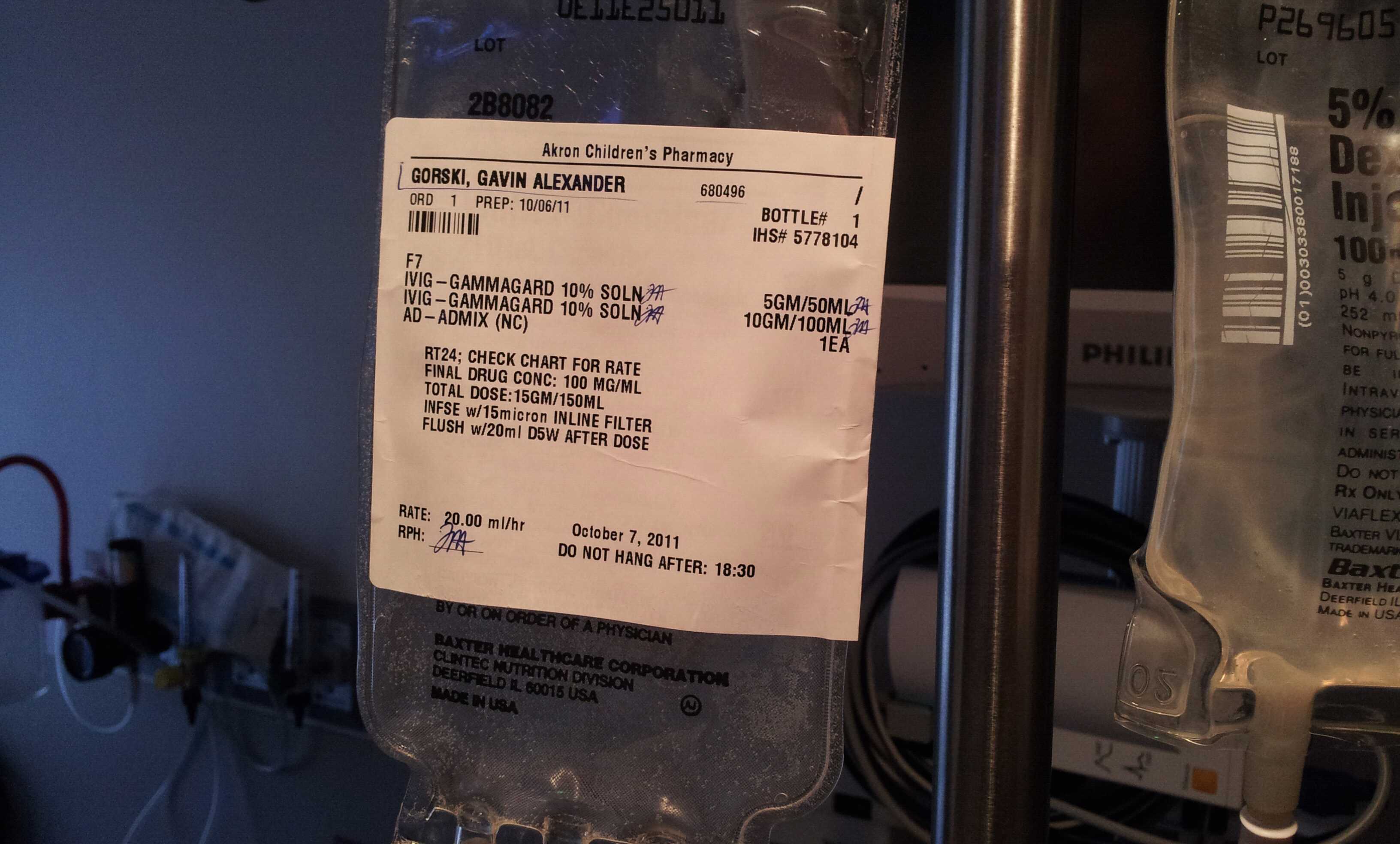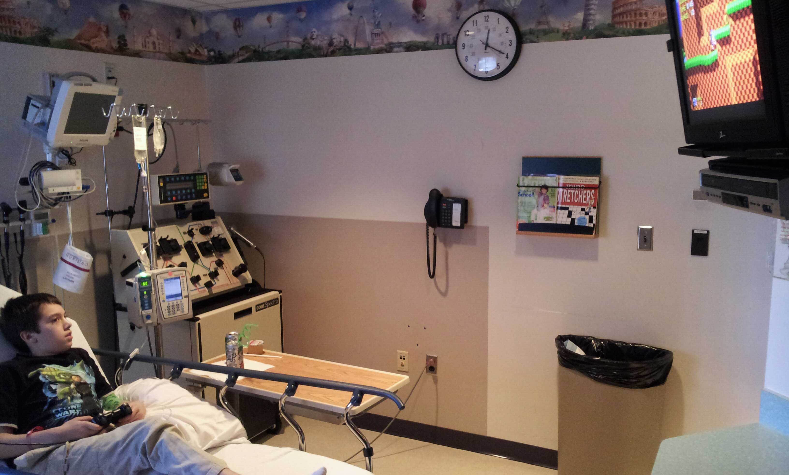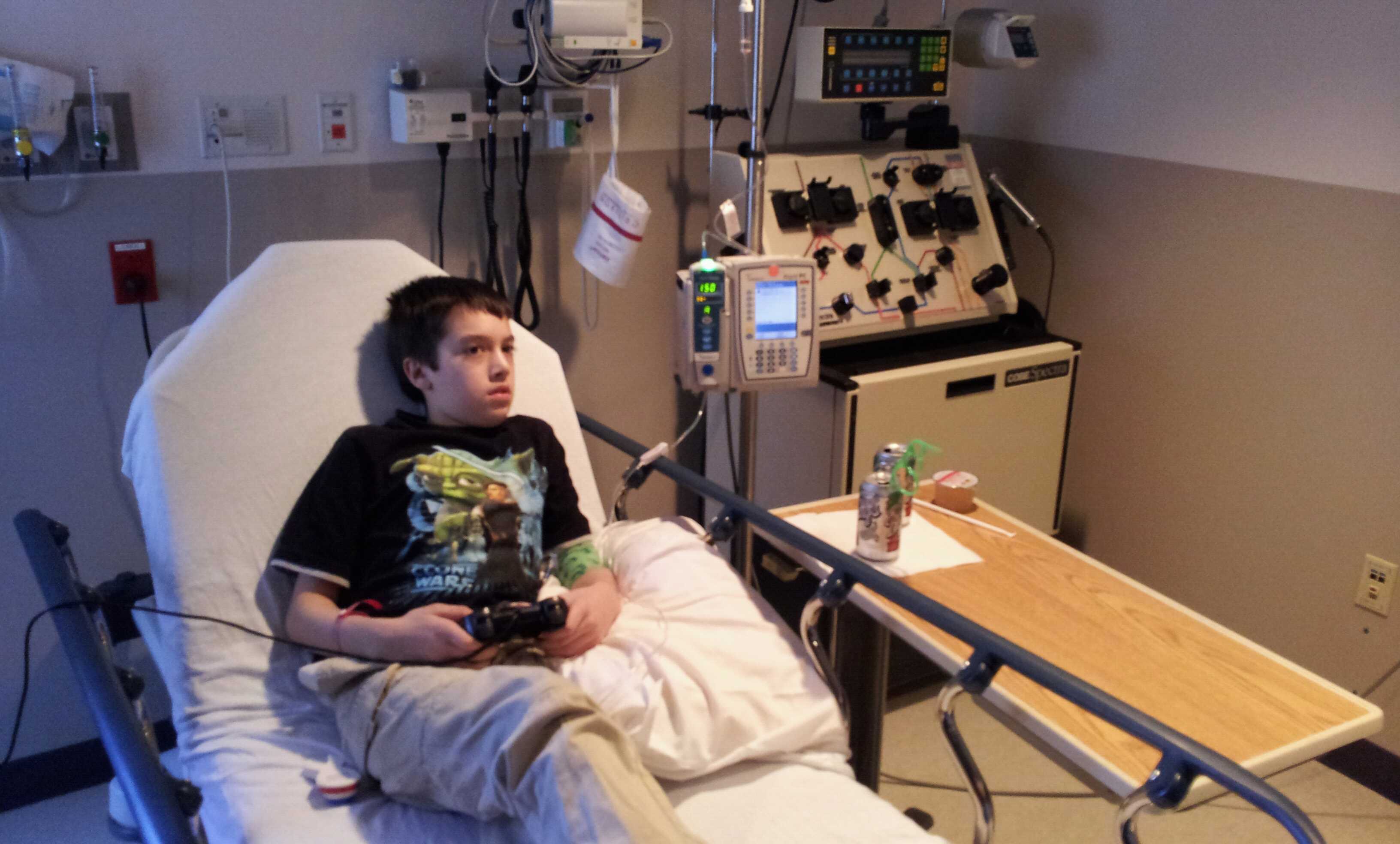 Gavin is currently receiving the antibodies as I type this. The process will take a few hours but he is comfortable, playing Sonic and eating lunch.