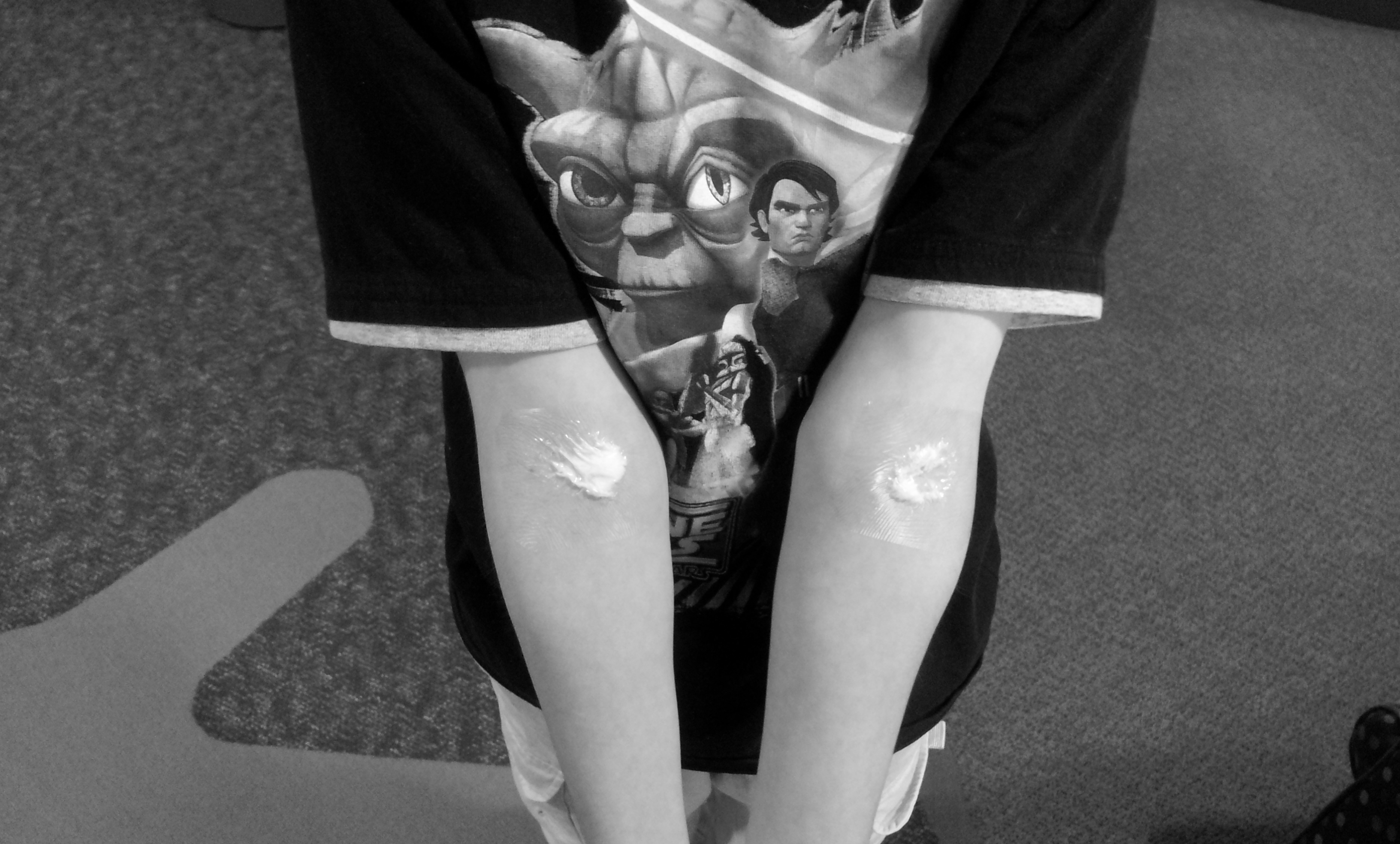 We applied his *numbing* medication prior to leaving and that's what's pictured below.