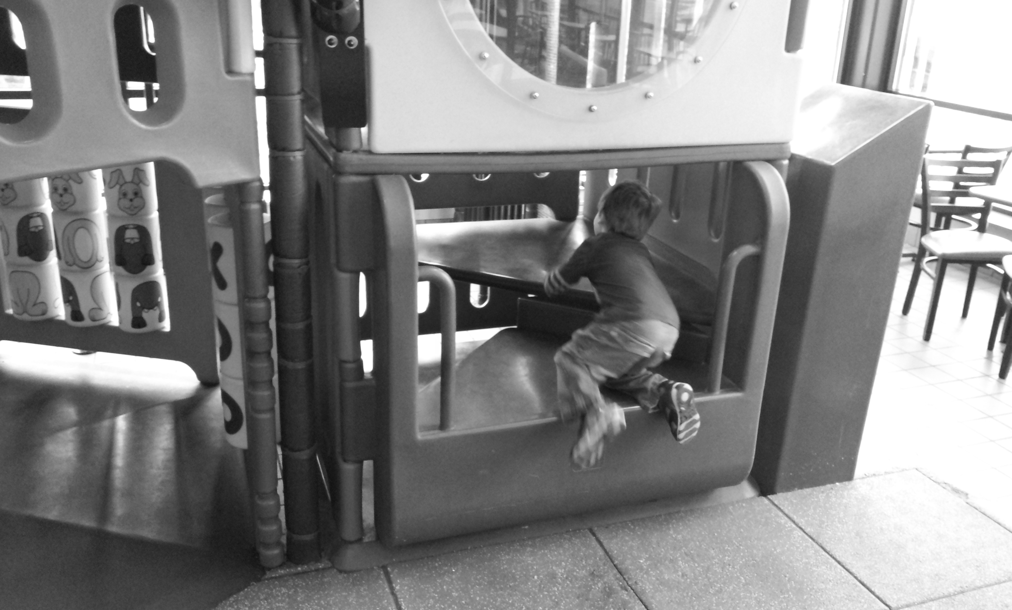 Lizze and I wanted to provide a distraction for him today. So after OT, we took him McDonalds and got him lunch and let him play on the indoor play ground. He had a blast.