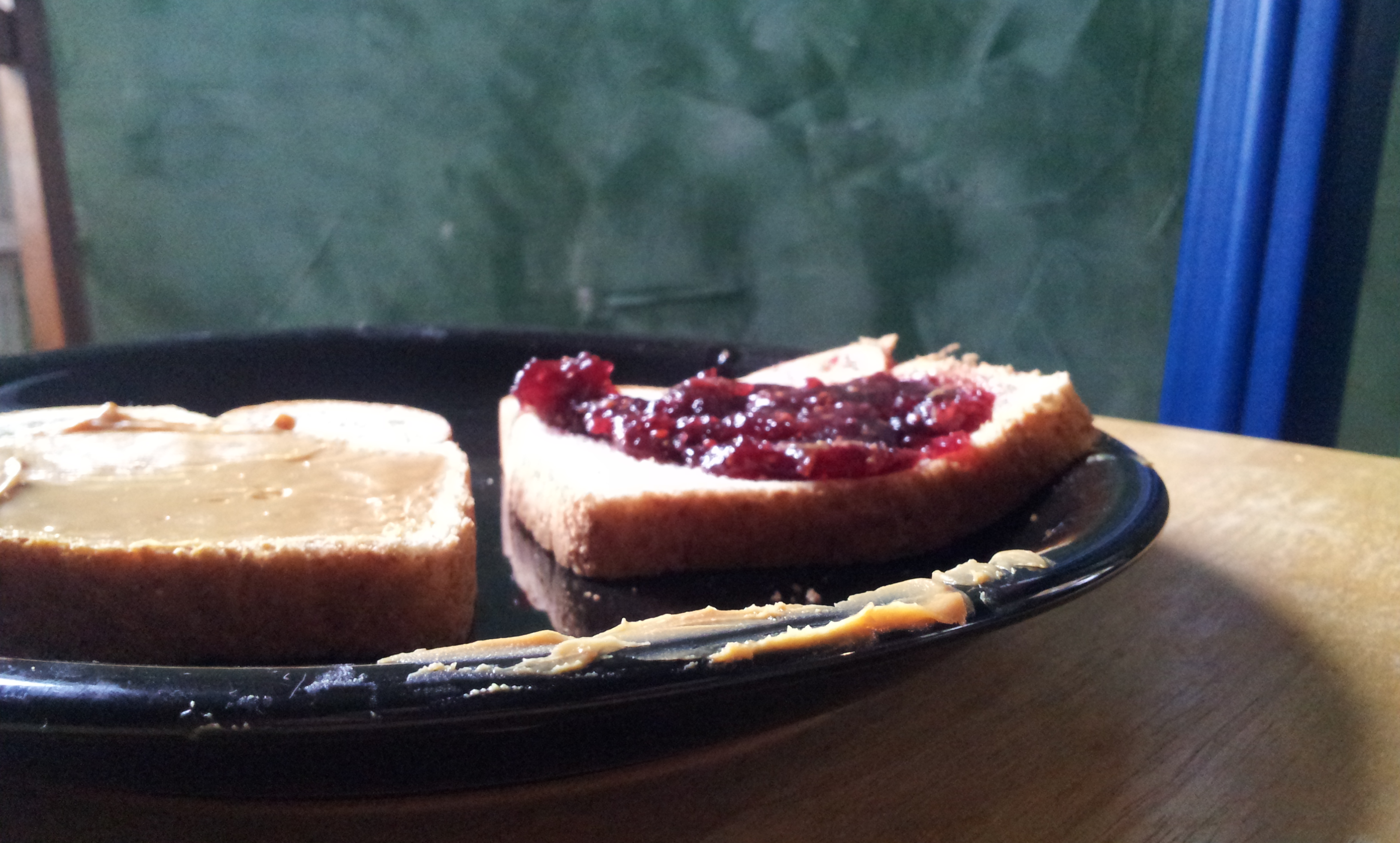 Today I'm featuring one of Gavin's little victories. He made his own lunch today. Pay close attention to the amount of jelly he used ;-)