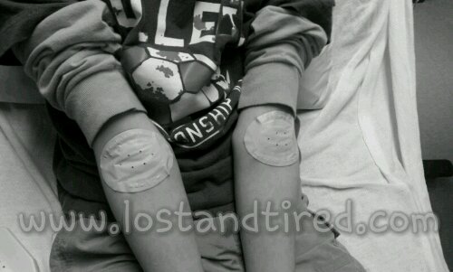 Once all this is done, we just have to wait until it's time for the infusion to begin. The wait time is broken up by the PS2 for Gavin, and the typing of this blog post for me. :-)
