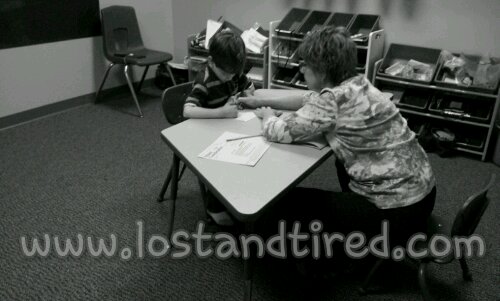 This also explains why Elliott is so fidgety at school. His muscle tone is so low that he literally has a difficult time keeping himself upright. Apparently, that is why he's bouncy as well.
