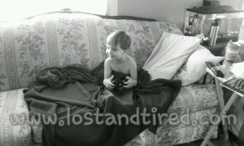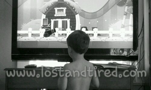 Emmett absolutely loves this game called* Angry Fish* on the XBOX 360. He rediscovered it today and has been quite content, for the first time today, shooting these angry fish out of a cannon at the meowing kitties on the other side of the screen.