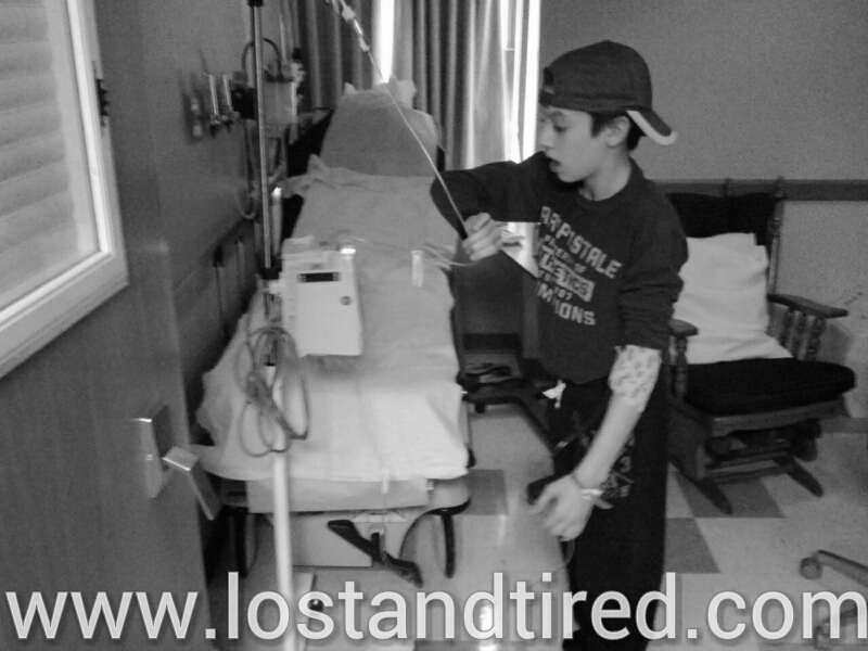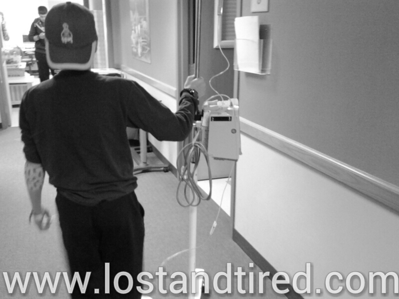 Since he was hooked up to the IV, it made things a bit more challenging but Gavin did great. He even pushed the IV poll all by himself, without getting tangled or knocking it over. :-)