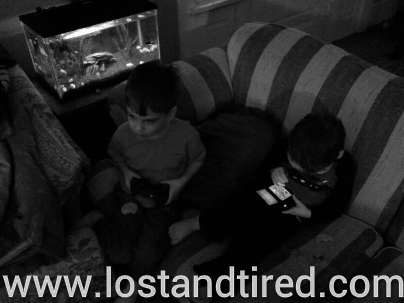 Elliott allowed Emmett to play with his prized but broken DSi. Elliott played the PS3 and Emmett sat next to him playing Mario on the DSi.