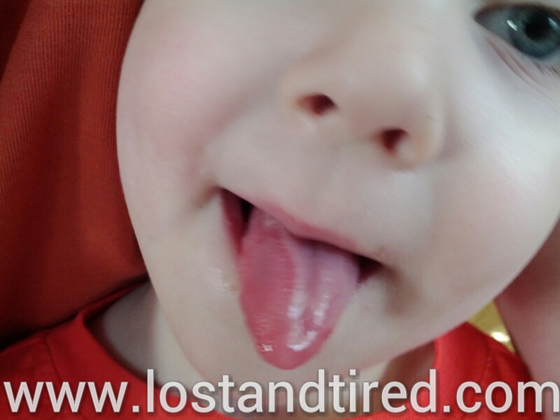 Note that white part of his tongue is not an active cold sore, however, the bright red parts are. It's simply unbelievable.