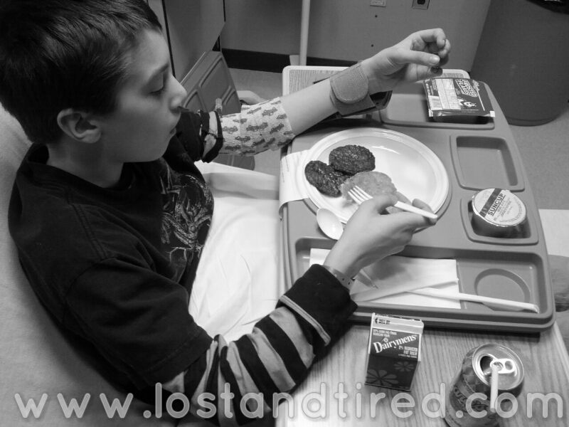 When Gavin's infusion takes place before noon, he is served lunch. This time he happen to pick breakfast.