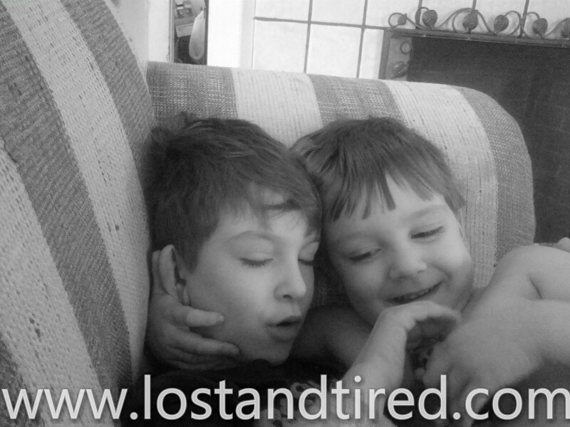 While these two are typically at each other's throats, mostly because Emmett enjoys picking on Elliott, they got along really well this morning while Mommy was at the doctor's.