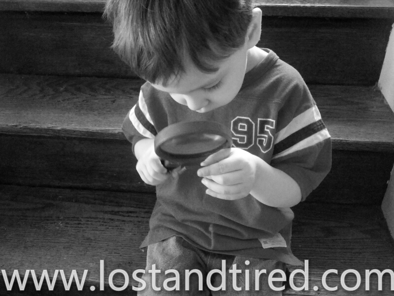 He is absolutely fascinated with how the magnifying glass makes everything bigger I happen to like how it has peaked his natural curiosity and desire to discover new things.