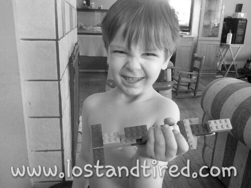 I'm totally proud of him and his creation. Emmett calls this masterpiece, *Bowser's Ship. *It's a Super Mario things.