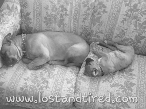Maggie and Bella, the canine members of the *Lost and Tired *family, have played themselves into a state of exhaustion.