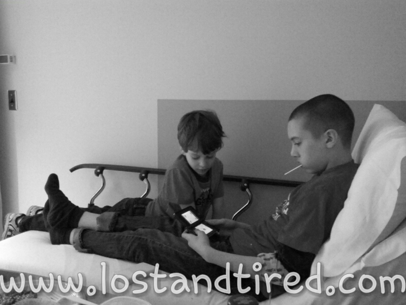 This was by far the worst Gavin has done at an infusion. I had taken Elliott to the cafeteria to eat lunch while they were putting the IV in. He didn't want to see that part.