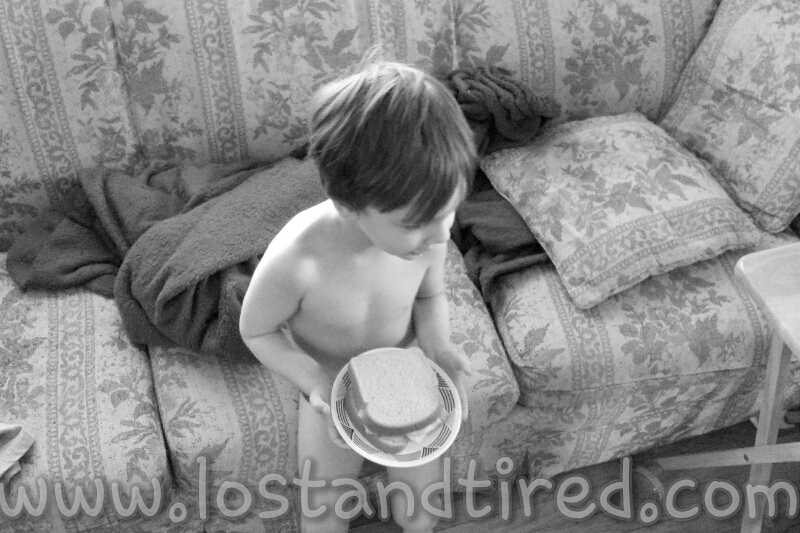 He actually made himself a turkey sandwich, all by himself. He doesn't like bread and ended up only eating the turkey, however, he's got the right idea.