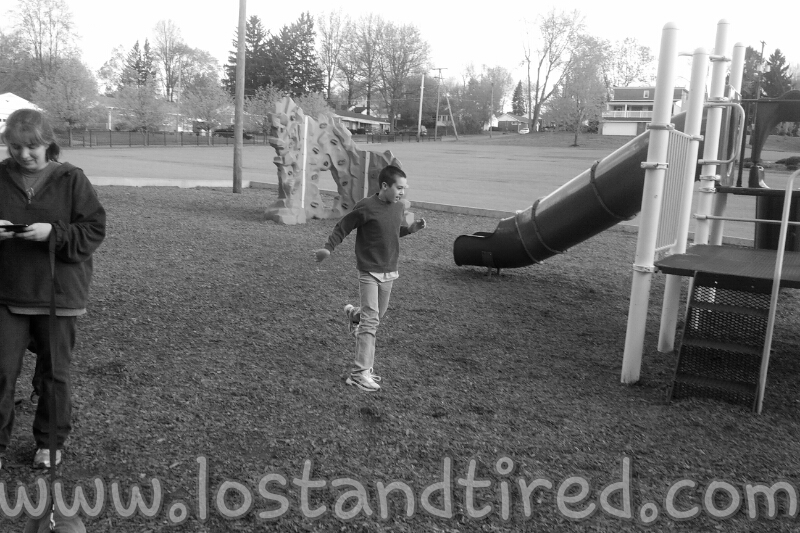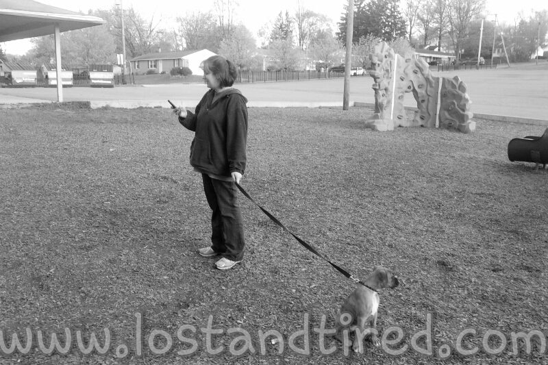 I decided that it would be best to find a *constructive* outlet for all their energy. So, I decided to do something crazy. We took the boys *and* the dogs to the playground to get rid of some *wiggles*.