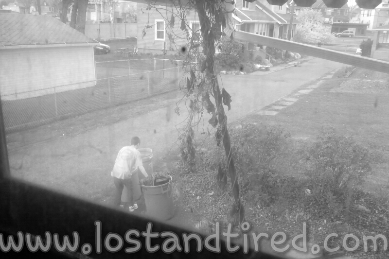 You can see Gavin hard at work through our dirty kitchen window. :-)
