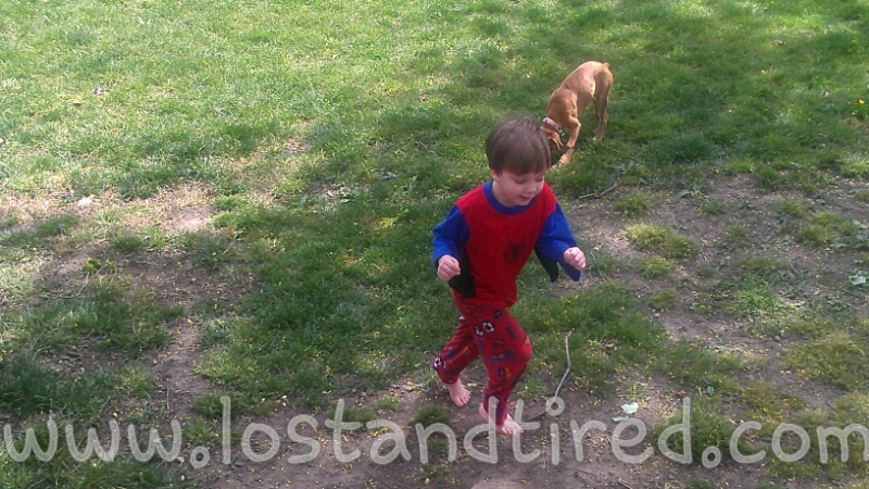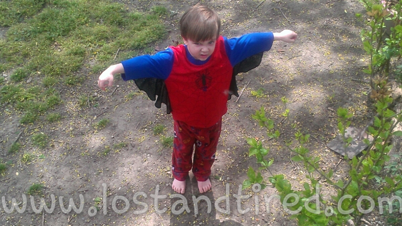 Also he's posing as *Spiderman in one of the pictures as well. *Oh...and he's actually wearing clothes :-)