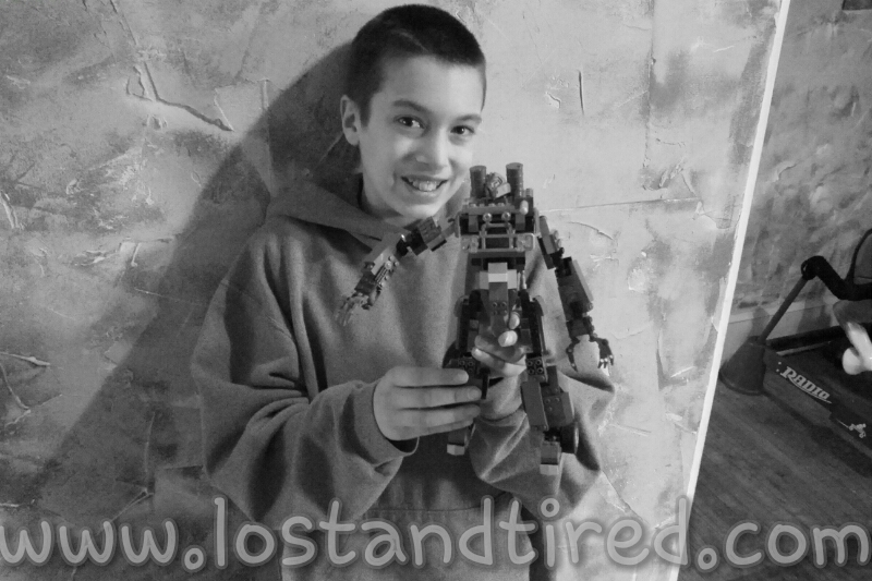 While Gavin was receiving his 11th antibody infusion yesterday, the nurses brought him a few presents. One of these presents was a large Lego Transformer set.