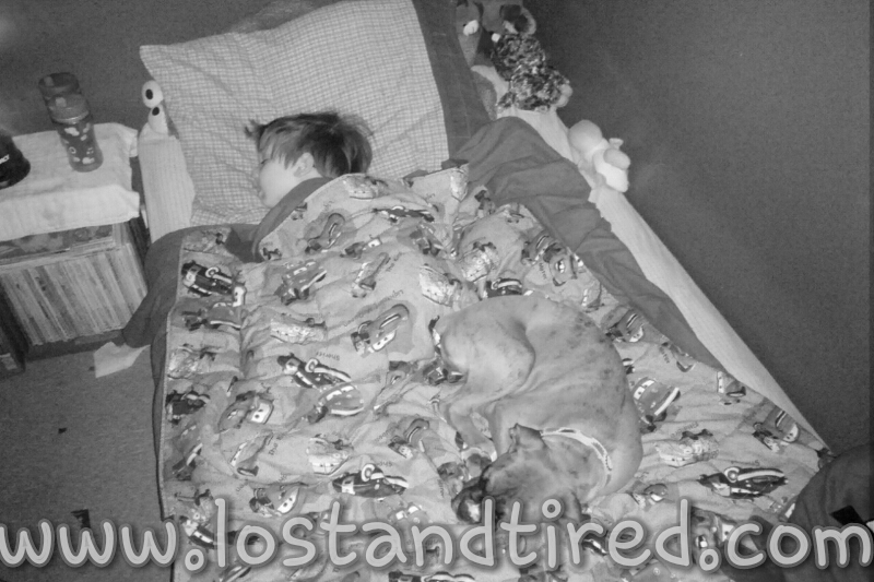 I also love how Bella is laying on his bed. It's like she's looking out for him and just enjoying being close to him. :-) This just melts my heart.