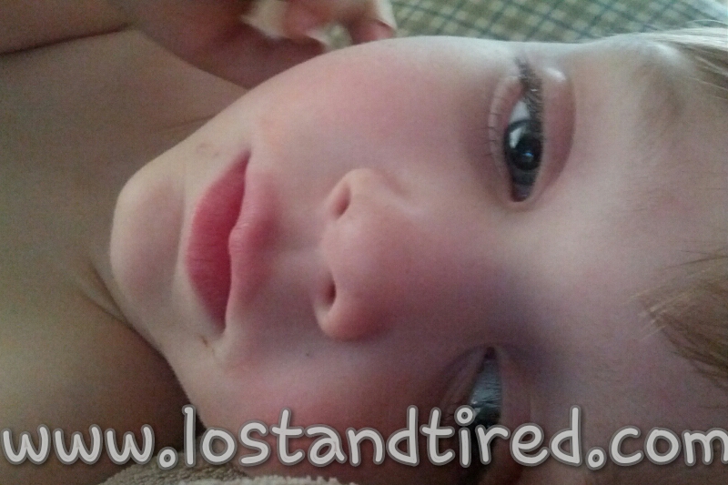 My sweet little Emmett John has hit yet *another *fever cycle. The fever isn't very high at all but you can see that he's not feeling good. To make matters a bit worse, he has got sores once his tongue again.