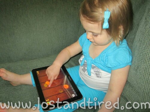 Robert, the winner of the giveaway, sent me this last night. It's a picture of his daughter using the Galaxy Tab. She's enjoying the game *Fruit Ninjas. *