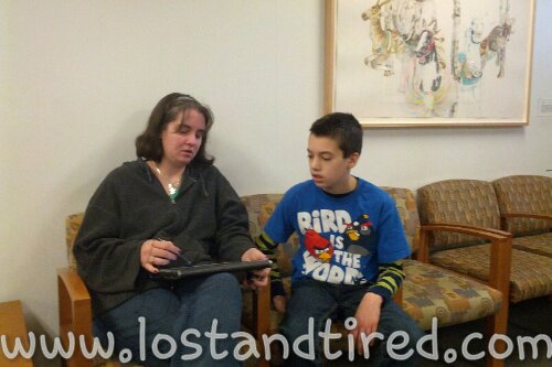 We have arrived at the Cleveland Clinic, exactly on time. Traffic was horrible and Gavin is already *out of it*.