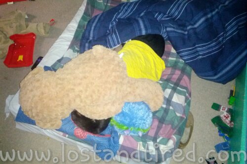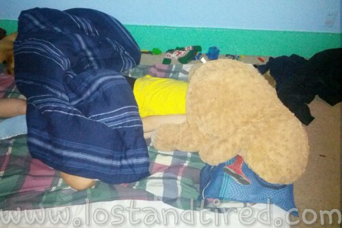 Gavin sleeps in the most bizarre ways. Many times he sleeps with his eyes open, which I have dubbed *creepy sleeping* because it's creepy. Other times he sleep all contorted in positions that just don't seem comfortable.