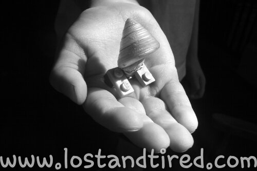 He took a seashell and used his Lego's to create an *ocean crab*, as he calls it. I was really impressed with this because it's extremely creative and he came up with this on his own.