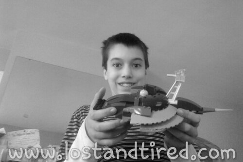 This is Gavin's latest Lego creation. He calls it the M-Wing Fighter and he made it for Emmett John. His endless creativity never ceases to amaze me.