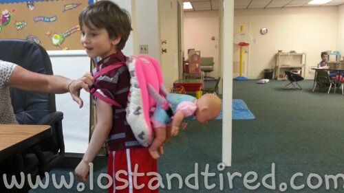 He was so cute at therapy the other night. He was really trying to take care of the baby and will someday make a fantastic parent. :-)