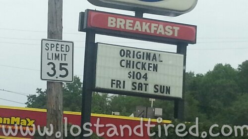 The sign reads: Original Chicken $104 Fri Sat Sun.