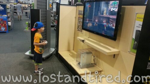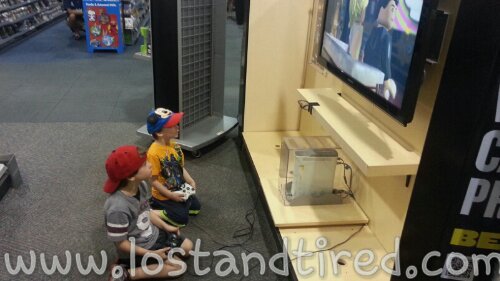 While I traded in their games, the two of them played *Lego Batman 2* on the XBOX 360 display.