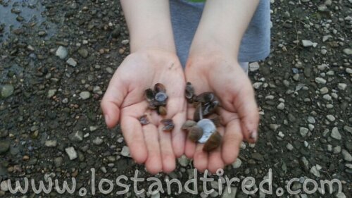 Elliott had such a good time and found a ton of fresh water clam shells. He only wanted the ones that were still connected. We also found some snail shells as well.